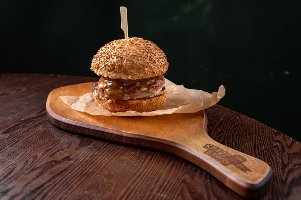 Бургер "Американский" представляет собой гастрономическое произведение искусства, идеально сочетающее в себе традиционные американские вкусы. Основой блюда служит свежая булочка с кунжутом, которая придаёт особую текстуру и аромат. Внутри находится стограммовая котлета из мраморной говядины, обладающая нежным вкусом и сочностью. Добавленные компоненты, такие как соус по американски, солёные огурцы, хрустящий бекон, плавленый сыр чеддер и маринованный лук, создают гармоничное сочетание, которое удовлетворит даже самых взыскательных гурманов. Этот бургер станет отличным выбором для тех, кто хочет насладиться классическим вкусом классического фастфуда в каждой детали.